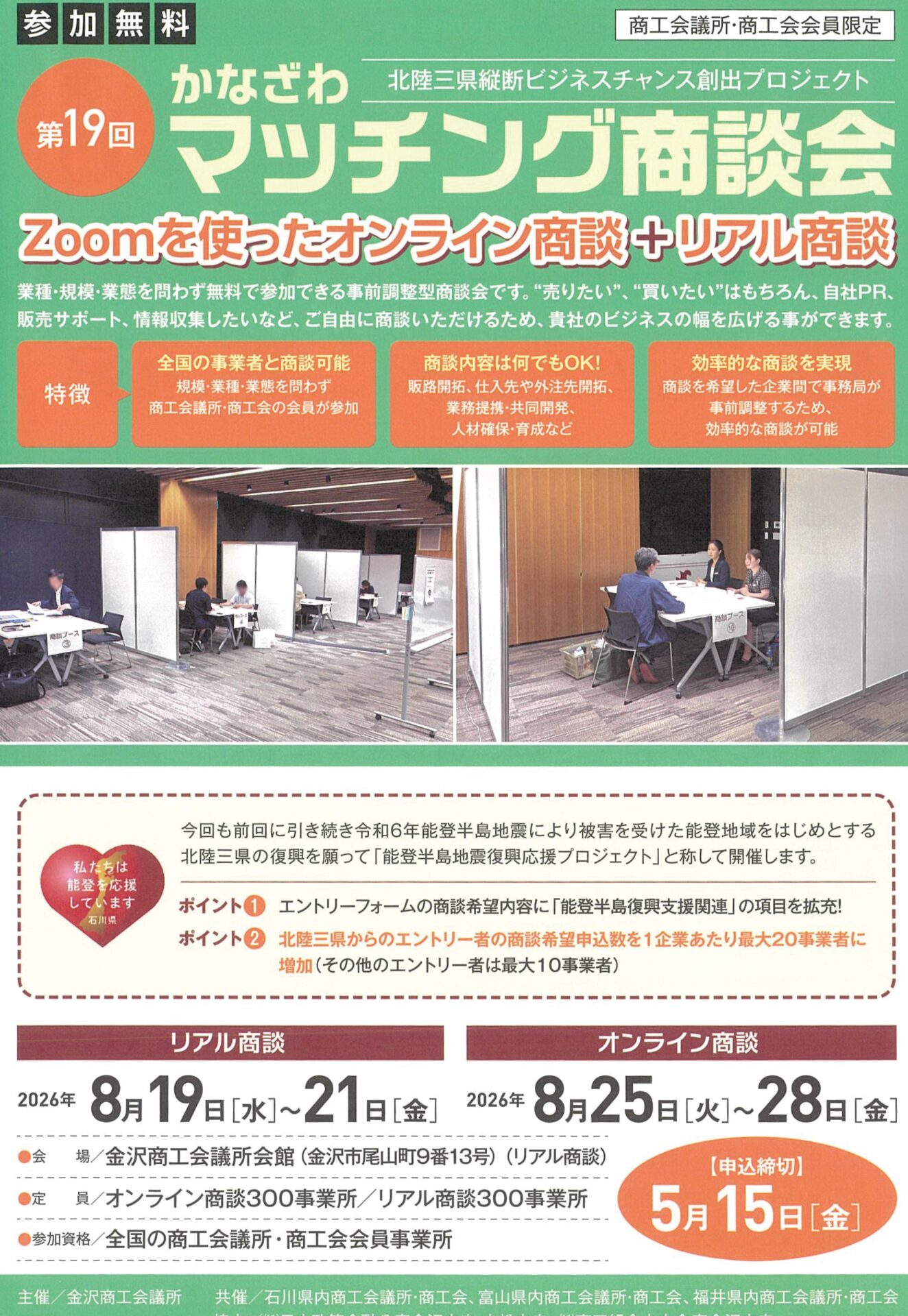 加賀商工会議所トピックスブログ 全て加賀商工会議所からのお知らせ検定補助金・助成金官公庁からのお知らせその他 【商工会議所・商工会会員限定】第19回かなざわマッチング商談会 参加事業所募集! 2026年4月3日 加賀商工会議所からのお知らせ 【5/29締切】加賀市新規出店支援事業について 2026年4月1日 補助金・助成金 【4/30締切】石川県賃上げに向けた収益力強化補助金の公募開始 2026年3月26日 補助金・助成金 【四半期調査・春】景況・業況の動向についてのアンケート調査ご協力のお願い(調査期間:2026/3/10~2026/4/17) 2026年3月23日 加賀商工会議所からのお知らせ 中東・ウクライナ情勢・原油価格上昇等に伴う特別相談窓口の設置について 2026年3月23日 加賀商工会議所からのお知らせ 石川県賃上げに関するアンケート調査へのご協力のお願い【令和8年4月17日迄】 2026年3月16日 官公庁からのお知らせ 【4/4(土)、5(日)開催】 熊坂川夜桜市のご案内🌸 2026年3月16日 その他 過去のトピックスブログ記事を閲覧 【商工会議所・商工会会員限定】第19回かなざわマッチング商談会 参加事業所募集! 2026年4月3日 【四半期調査・春】景況・業況の動向についてのアンケート調査ご協力のお願い(調査期間:2026/3/10~2026/4/17) 2026年3月23日 中東・ウクライナ情勢・原油価格上昇等に伴う特別相談窓口の設置について 2026年3月23日 加賀商工会議所会報 令和8年3月号を発刊しました 2026年3月9日 3/18(水)「ライフデザイン経営セミナー」参加者募集! 2026年3月3日 加賀商工会議所会報 令和8年2月号を発刊しました 2026年2月9日 これより過去の「加賀商工会議所のお知らせ」トピックスを閲覧 第172回日商簿記検定試験 合格者受験番号発表 2026年3月9日 第13回加賀ふるさと検定に合格された受験者の方々を発表します! 2025年12月19日 第171回日商簿記検定試験 合格者受験番号発表 2025年12月1日 これより過去の「検定」トピックスを閲覧 【5/29締切】加賀市新規出店支援事業について 2026年4月1日 【4/30締切】石川県賃上げに向けた収益力強化補助金の公募開始 2026年3月26日 小規模事業者持続化補助金(一般型 創業枠)第3回(4/30締切) 2026年1月29日 【令和8年1月1日変更】最低賃金引き上げに伴う 県支援制度が一部内容変更されました 2026年1月5日 【令和7年10月17日より申請受付開始】最低賃金引き上げに伴う県支援制度のご案内 2025年10月17日 (最大500万円助成金)片山津温泉商店街新規出店コンペティション事業(第2次募集9/30締切) 2025年8月26日 「令和6年能登半島地震等 石川県なりわい再建支援補助金説明会」(8/28~9/9) 2025年8月19日 これより過去の「補助金・助成金」トピックスを閲覧 石川県賃上げに関するアンケート調査へのご協力のお願い【令和8年4月17日迄】 2026年3月16日 2/26(木)賃上げ・省エネに向けた県支援制度説明会のご案内 2026年2月9日 石川県特定(産業別)最低賃金改正のお知らせ(R7.12.31~) 2025年12月9日 越前加賀県境の館 オープン10周年記念 写真コンテスト作品募集中 2025年11月12日 【重要】令和7年10月8日より石川県内の最低賃金の改正について 2025年10月10日 加賀市LINE・AI活用「ごみナビ」(多言語対応)の周知ご協力のお願い 2025年10月6日 10/14(火)開催 外国人材の確保・定着を考える「いしかわ外国人材確保・定着促進研究会」キックオフ講演会・事例発表会のご案内 2025年9月30日 これより過去の「官公庁からのお知らせ」トピックスを閲覧 【4/4(土)、5(日)開催】 熊坂川夜桜市のご案内🌸 2026年3月16日 【2026/1/8~2/6】とやまビジネスドラフト オンライン商談会エントリー募集中! 2025年9月11日 10/1(水) 開催! 特殊詐欺対策セミナー 2025年9月1日 石川県アンテナショップ「八重洲いしかわテラス」テストマーケティング事業参加事業者募集(締切8/25) 2025年8月15日 9/19(金)開催 設備更新や省エネ設備更新に使える、「省エネ補助金&省エネ診断説明会」 開催 2025年8月8日 9/18開催 人手不足解消の鍵!外国人材活用セミナー 2025年7月31日 (最大200万円)小規模事業者持続化補助金(一般型 災害支援枠)8次(10/27締切) 2025年7月29日 これより過去の「その他」トピックスを閲覧 会員ちらし無料発信ブログ 🌸3/15(日)「加賀温泉駅 開業2周年記念 加賀温泉駅前フェスタ2026」開催!🌸2026年2月26日 3/23(月)「ウルトラマンA TACの仲間たちと行く「能登復興支援 日帰りバスツアー」参加者募集!2026年2月12日 会員ちらし無料発信ブログへの投稿を希望する方はこちら リンク