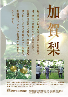 加賀市の特産品「加賀梨」を使用したスイーツをアピールする「加賀梨スイーツフェア」を平成25年9月14日(土)~24日(火)の日程で実施中です。