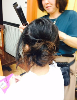 | 先生はブライダルのヘアセットも経験されたことがあるので、スピーディーかつ素敵にセットしてくださいました♪ |