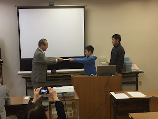 高級懐中時計と表彰状が田中親子に手渡されました。