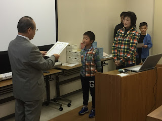 神尾 勘太君(片山津小3年生)親子にも表彰状が手渡されました。
