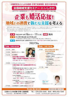 さて、実は先日、石川県文教会館で開催された「全国結婚支援セミナーinいしかわ(2日目)」において、加賀商工会議所婚活プロジェクトが事業事例発表をしてまいりました!