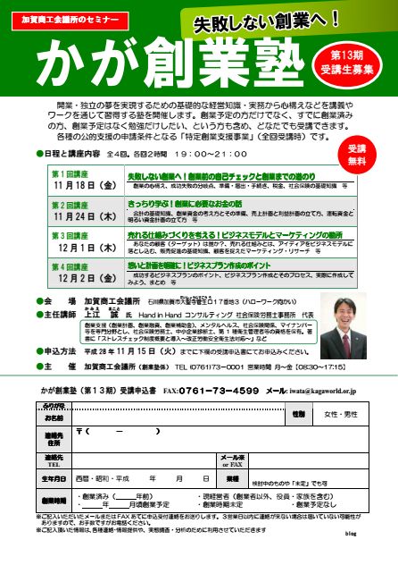 【お申込み】受講申込書に必要事項をご記⼊いただき、加賀商⼯会議所までお申し込みください