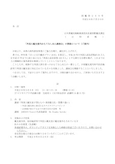 増加する外国人旅行者へのおもてなし向上 の一環として の一環として、日頃 観光案内所や宿泊施設等で外国人観光客対応されている方々を対象とした、講演 会を開催することに致しました。詳しくは、チラシをご確認下さい。