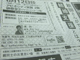 また、5/16(月)には北國新聞と北陸中日新聞の両紙に、このお見合い会が加賀市のセミナー