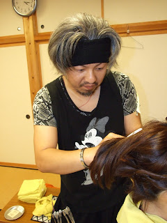 以前の浴衣婚活でのヘアセット風景。