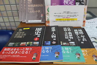 また、直接検定とは関係はありませんが、他団体が製作した各種テキストや冊子、DVDなどの加賀市のことがよく分かる参考資料を展示してあります。DVDは貸し出しできますので、窓口までお声かけ下さい。