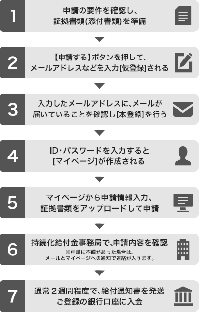 申請後、通常2週間程度(登録の銀行口座に振込)