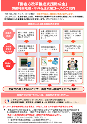 「労働時間短縮・年休促進支援コース」は、生産性を向上させ、時間外時間の削減や年次有給休暇の促進に向けた環境整備に取り組む中小企業に対して、その実施に要した費用の一部が助成されます。