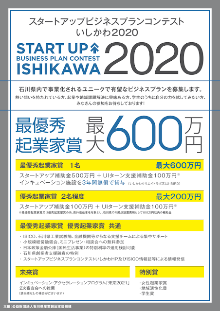 「スタートアップビジネスプランコンテストいしかわ2020」について