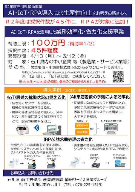 「スタートアップビジネスプランコンテストいしかわ2020」エントリー募集(~6/26)