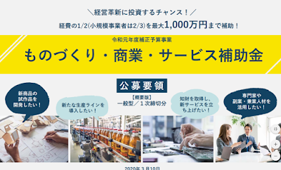 令和元年度補正「ものづくり・商業・サービス生産性向上促進補助金」の公募