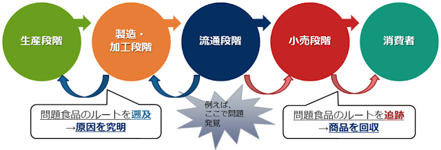 「食品の移動を把握できること」です。各事業者が食品を取扱った際の記録を作成し保存しておくことで、食中毒など健康に影響を与える事故等が発生した際に、問題のある食品がどこから来たのかを調べ(遡及)、どこに行ったかを調べ(追跡)ることができます。