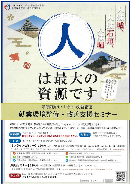 HOMEその他 vol.1とvol.2のマスク映えメイク術に引き続き、 10/30のマスクde婚活に向けてより機運を高めてもらえればと、 第3弾の動画を作成しました! →婚活ファッション&アイテム―vol.3―の動画は ★☆コチラ☆★ 今回は、山代にあるselect clothes MOAさんにご協力していただき、この秋オススメの婚活女子ファッションとアイテムをご紹介いただきましたよ♪ 会議所の会報誌でもご紹介したことがあるこちらのお店は、1階にMOAさん、2階にオーダー家具やインテリア雑貨を扱うMARKSさんが入る共同店舗。 どちらも女性に人気で魅力的なお店なんです。 この機会に是非足を運んでみて下さいね~! 就業環境整備・改善支援セミナーのお知らせ R3/10/7より 石川県最低賃金は861円となります。