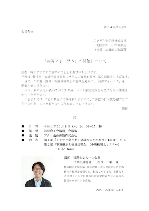 なおセミナーは加賀商工会議所管内事業所のみ対象とさせていただきます。