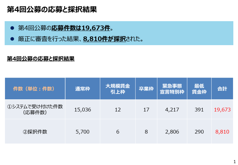 中小企業生産性革命推進事業小規模事業者持続化補助金<低感染リスク型ビジネス枠>」について、第5回受付締切分の採択結果が発表されました。