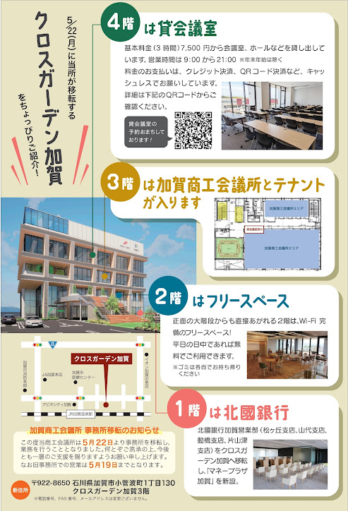 クロスガーデン加賀3階での営業となります。旧事務所では営業しておりませんので、ご了承下さい。