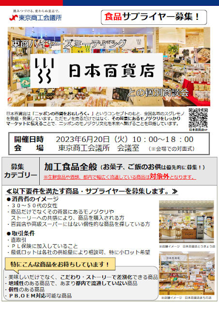 日本百貨店との個別商談会における参加事業者募集のご案内