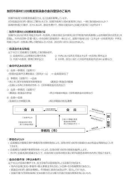 A.地域が一丸となって、加賀市版RE100(市内エネルギーの地産地消/地域内経済循環)や再生エネルギーの推進に取り組む協議会です。