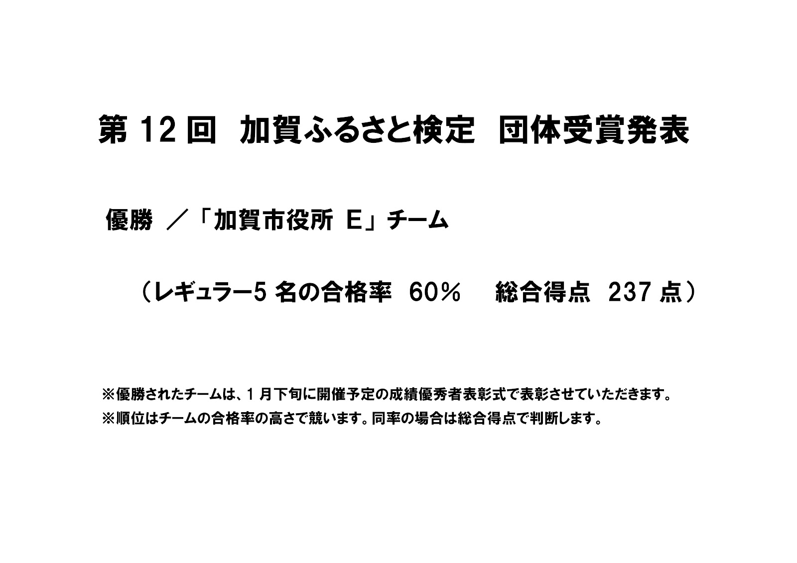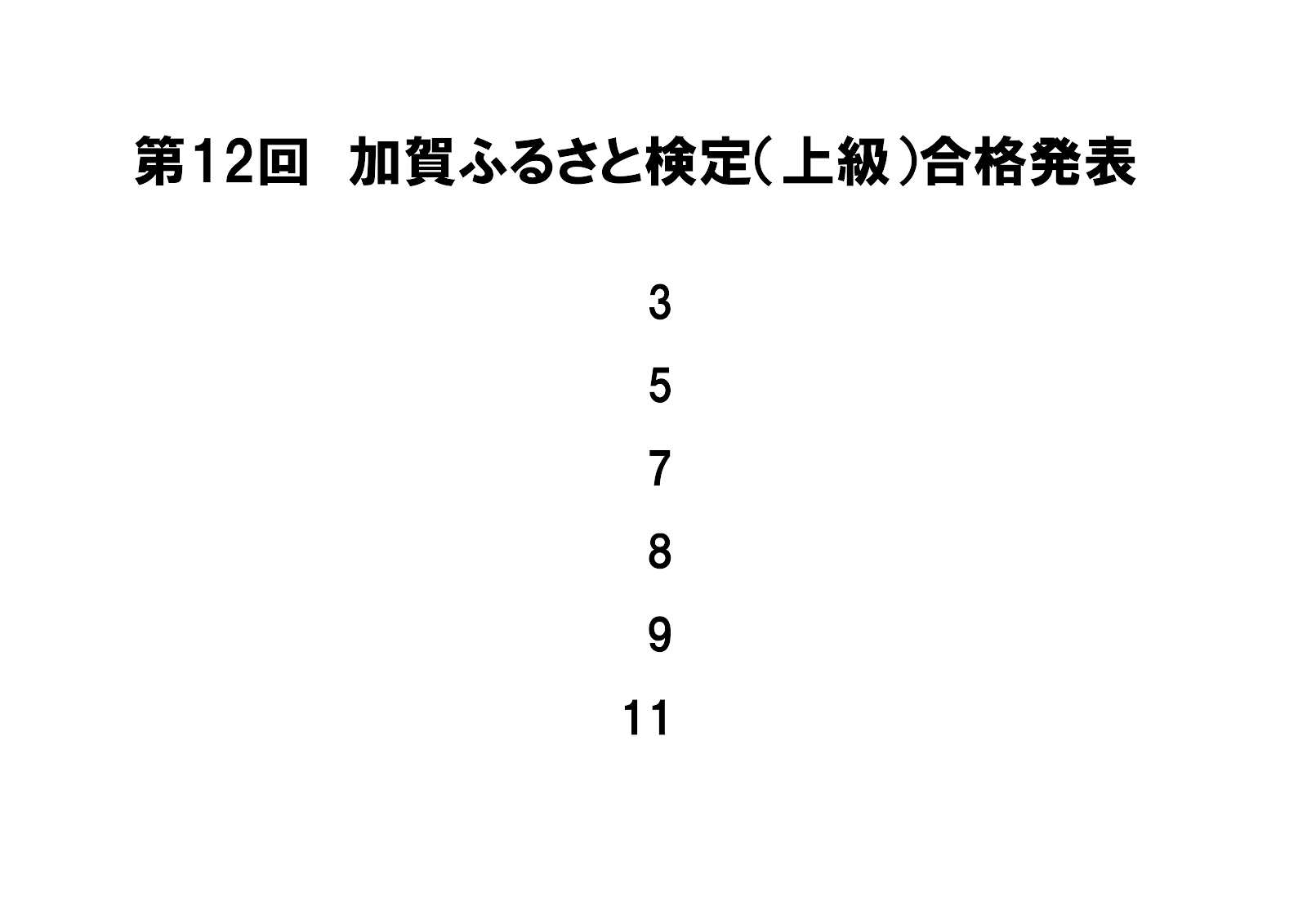 第12回 加賀ふるさと検定合格者 受験番号発表