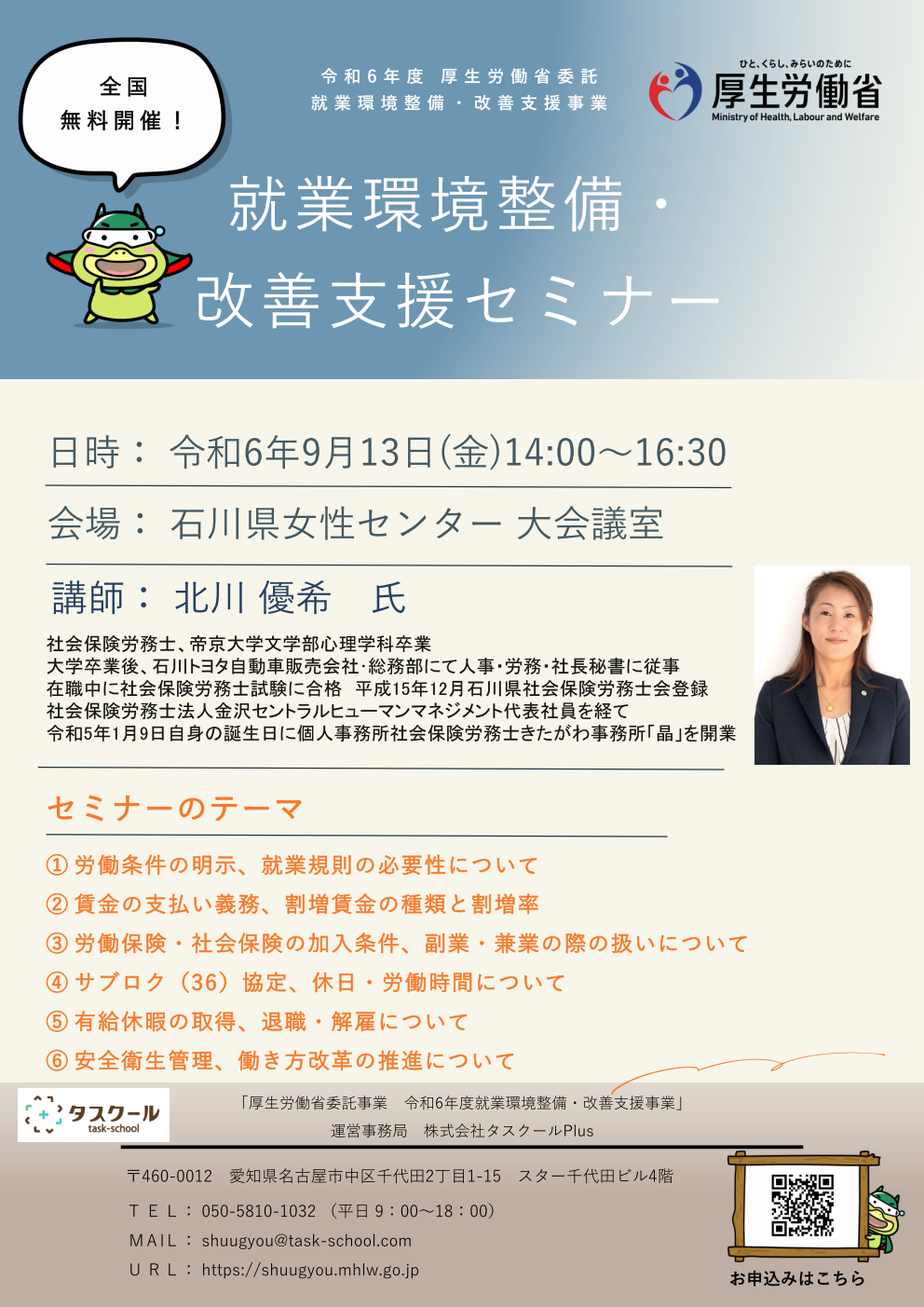 ※受講者7名以上となる場合は、講師が申込事業者へ派遣も可能になる場合がございます。お気軽にご相談下さい。