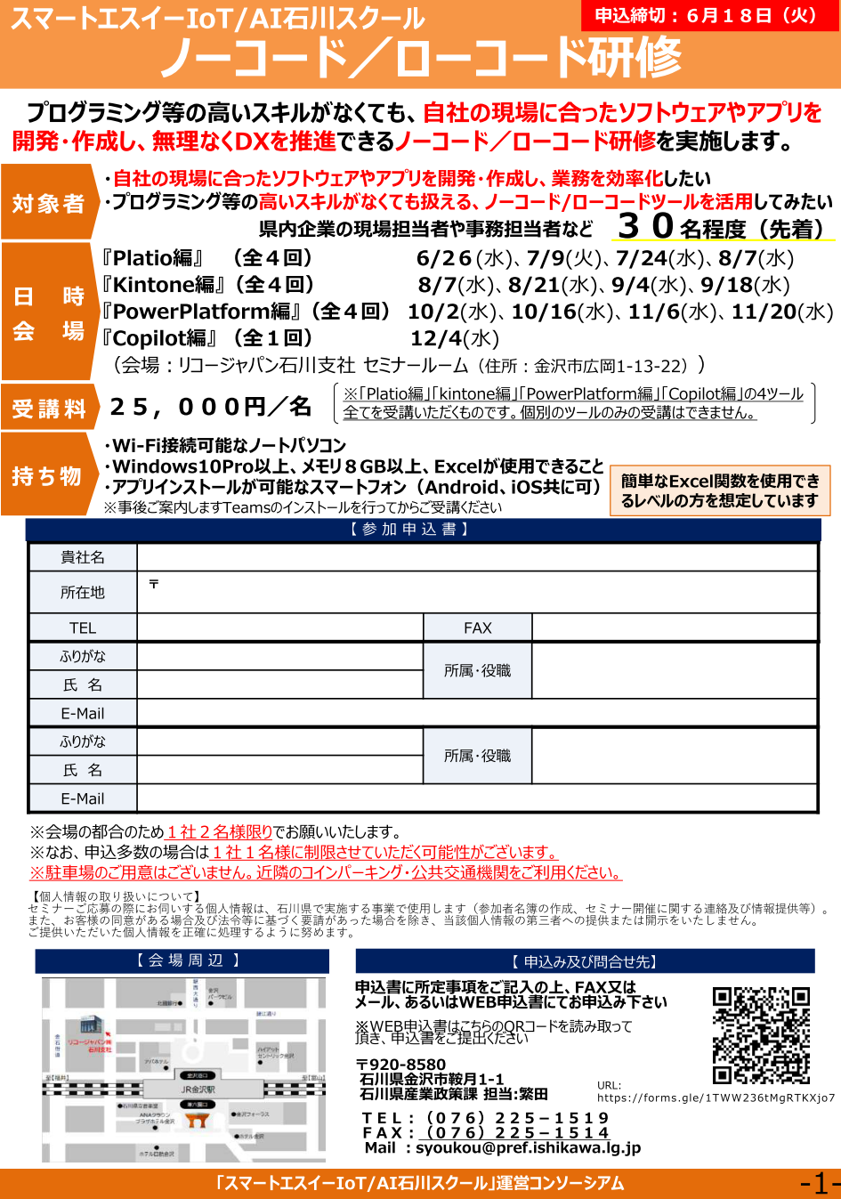 所属課:石川県商工労働部産業政策課石川県金沢市鞍月1丁目1番地電話番号:076-225-1519 ファクス番号:076-225-1514