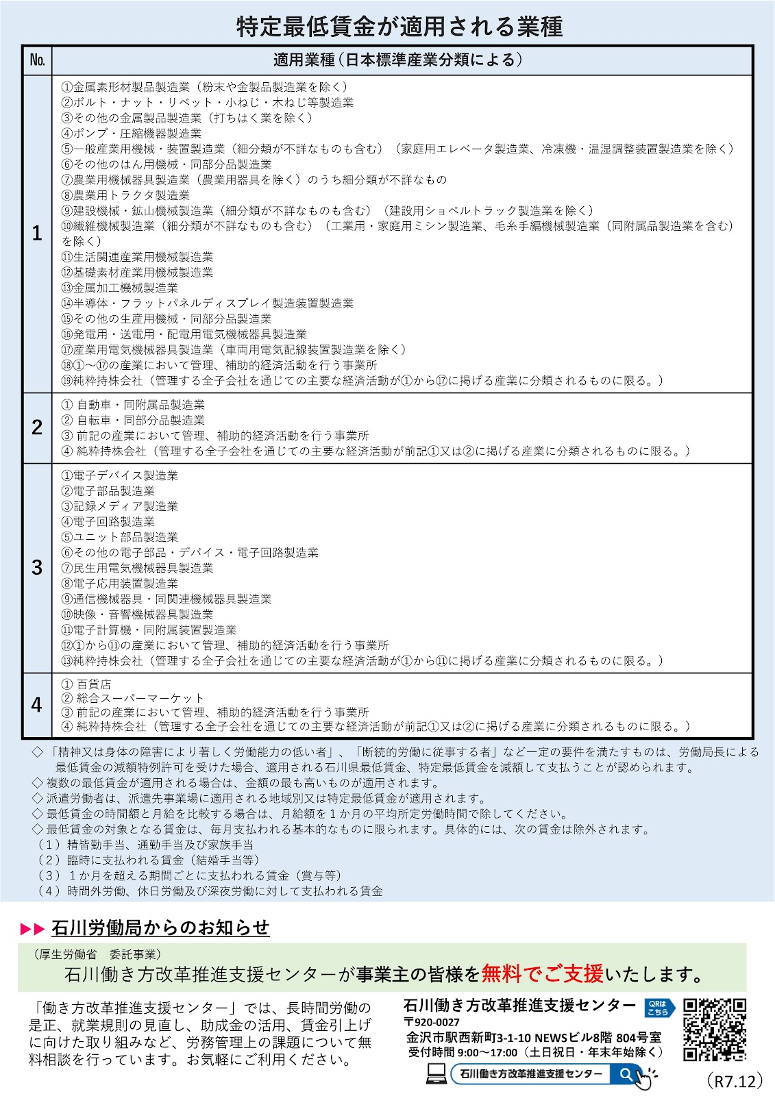 地域別最低賃金(石川県最低賃金)の改正に続き、