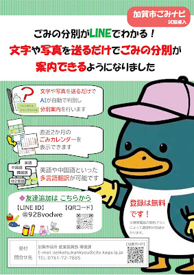 【加賀市LINE・AI活用「ごみナビ」(多言語対応)の周知ご協力のお願い】