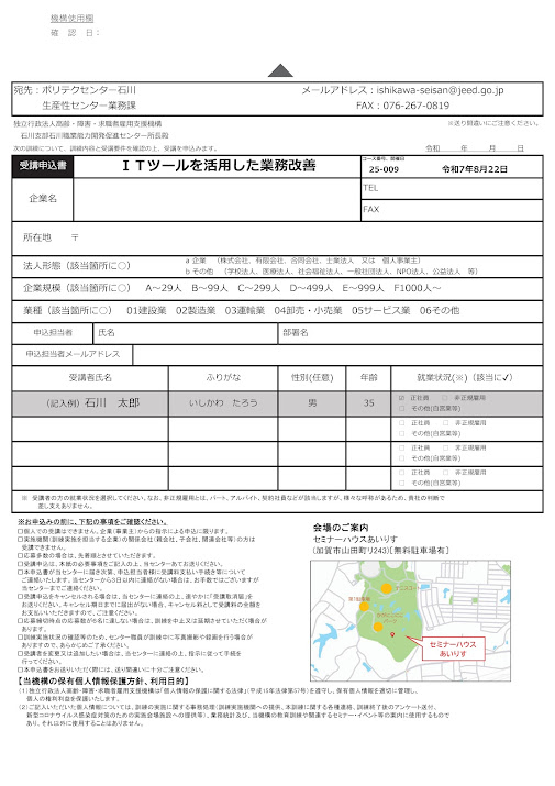 ~ポリテクセンター石川 生産性向上人材育成支援センターからのお知らせ~