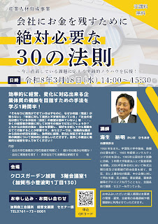 ○問合 :加賀商工会議所 経営支援課 セミナー係まで、セミナー申込リンクより申し込んでください。
