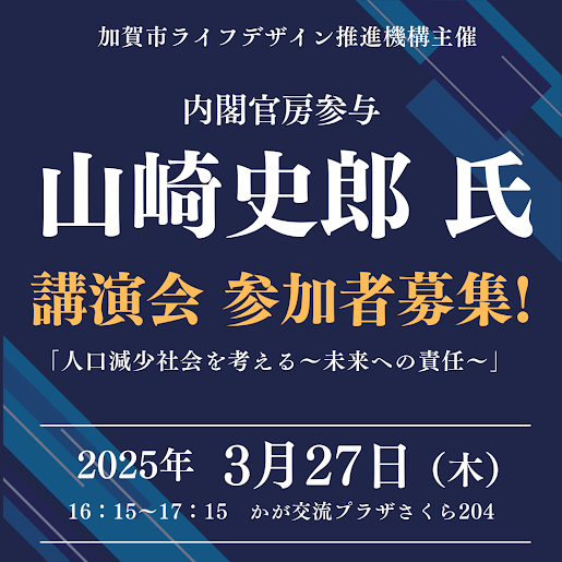 3/27(木)内閣官房参与 山崎史郎氏講演「人口減少社会を考える~未来への責任~」参加者募集!(3/14迄)
