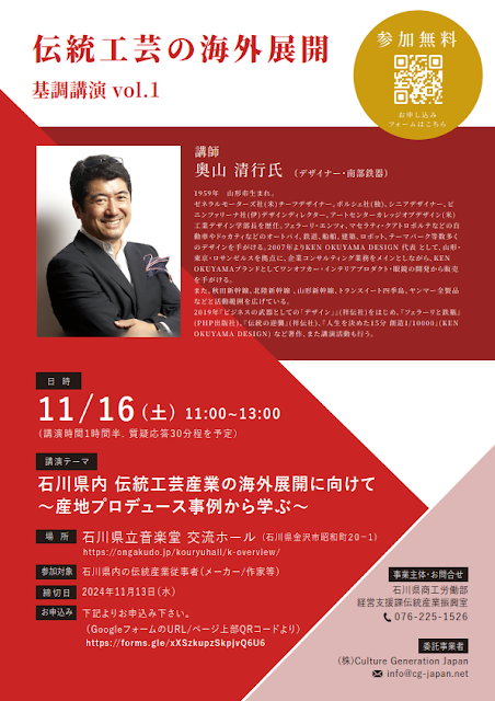 (11/16)講演会「伝統工芸の海外展開」(石川県)