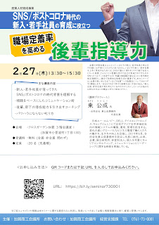 2/27(木)開催 「職場定着力を高める後輩指導力」セミナー