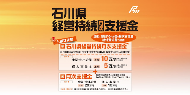 2021年8月2日から9月30日までの石川県へのまん延防止等重点措置の適用を受け、国の月次支援金に上乗せし…