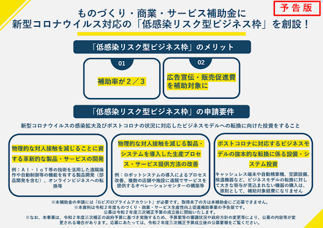 ものづくり補助金「低感染リスク型ビジネス枠」の公募が開始(~2/22)