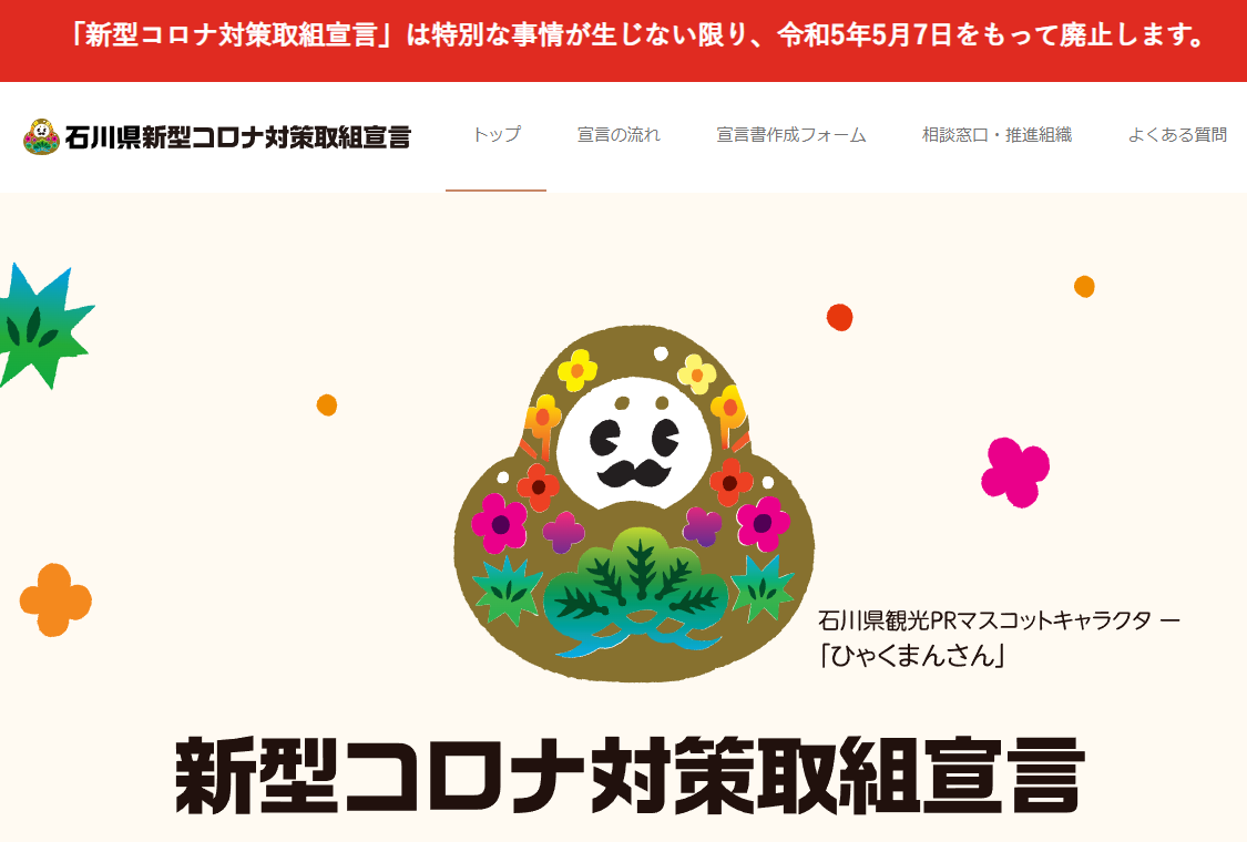 「新型コロナ対策取組宣言」の廃止について 石川県では、これまで「新型コロナ対策取組宣言」を通じ、貴…