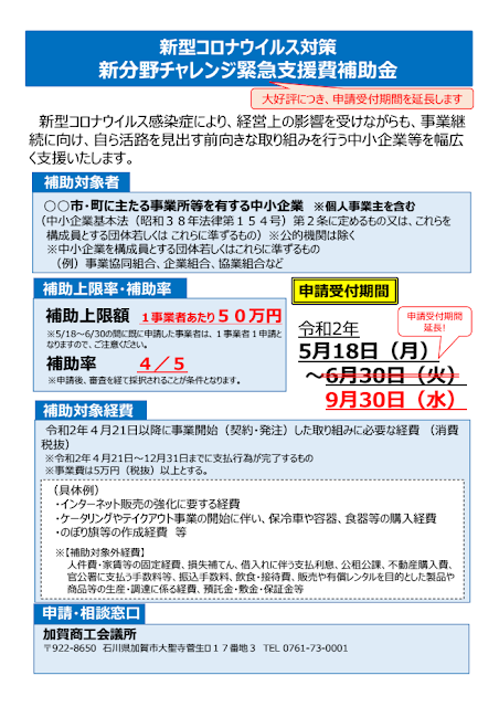 公募が5月18日に始まりました「新分野チャレンジ緊急支援費補助金」と「小規模事業者感染拡大防止緊急支…
