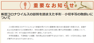 4月16日(木)、全国銀行協会は金融庁および日本銀行からの依頼を受け、全国の手形交換所宛に「手形交…