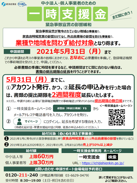 「一時支援金」について、申請に必要な書類の準備に時間を要するなど、申請期限(2021年5月31日)に間に…