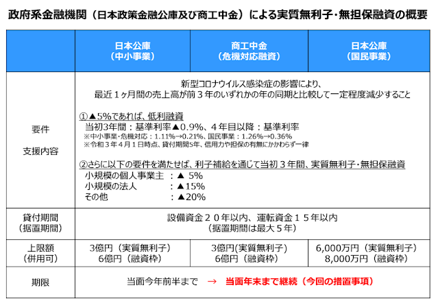 政府系金融機関による実質3年無利子・無担保融資の申込期限については、「当面今年前半まで」、とされ…