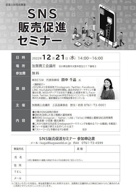 12/21 SNS販売促進セミナー(受講者募集中)