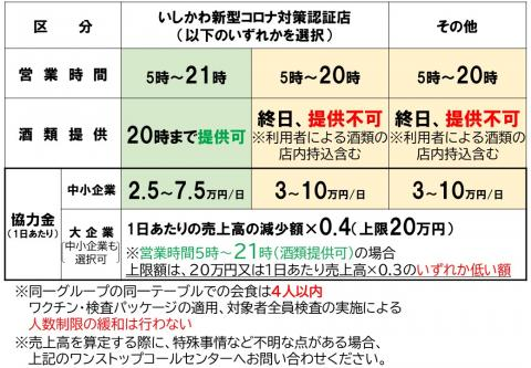 2022年2月21日から3月21日まで(29日間)の飲食店への時短要請にかかる協力金(石川県新型コロナウイル…