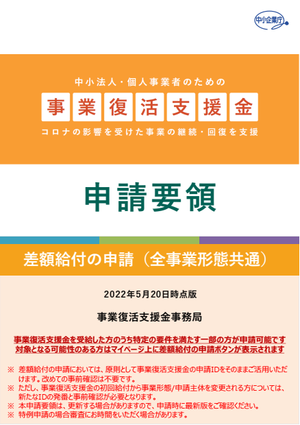 事業復活支援金の「差額給付」申請について(6/1~6/30)