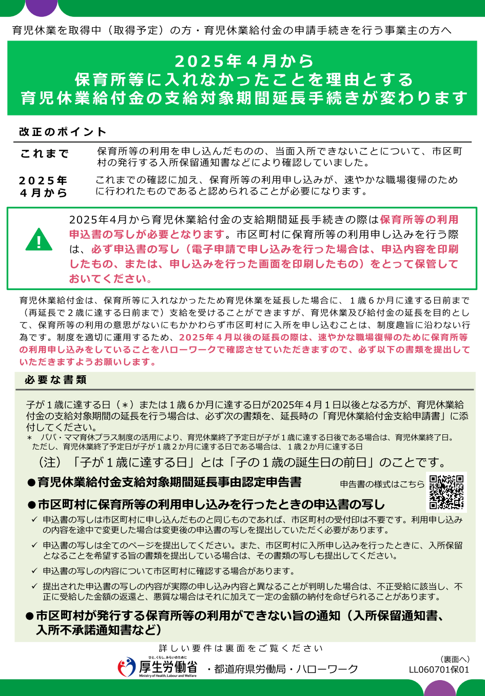 育児休業給付金の期間延長手続きの見直しについて(厚生労働省のお知らせ)