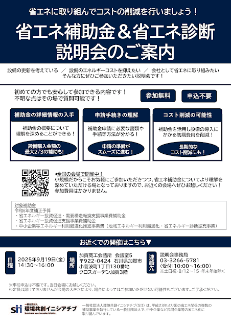 9/19(金)開催 設備更新や省エネ設備更新に使える、「省エネ補助金&省エネ診断説明会」 開催