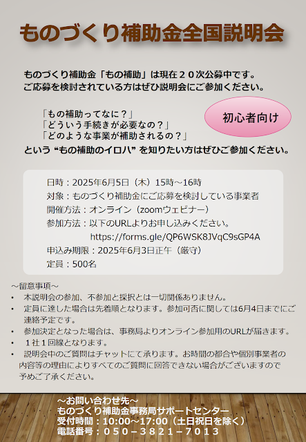 ものづくり・商業・サービス生産性向上促進補助金(第20次)オンライン説明会(6/5)