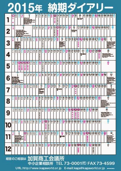 加賀商工会議所 中小企業相談所は、小規模事業施策普及の一環として、各種の税・保険料の納期がわか…