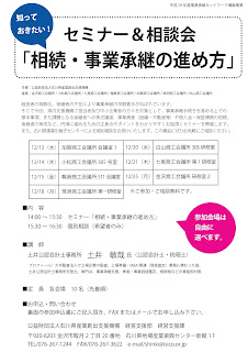 12/13(水)開催 各会場10名限定!「相続・事業承継の進め方」セミナー&相談会